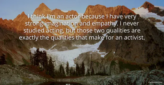 Sarandon, Susan. (2026, January 16). I think I'm an actor because I have very strong imagination and empathy. I never studied acting, but those two qualities are exactly the qualities that make for an activist. FixQuotes. https://fixquotes.com/quotes/i-think-im-an-actor-because-i-have-very-strong-95921/