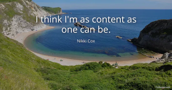 Cox, Nikki. (2026, January 16). I think I'm as content as one can be. FixQuotes. https://fixquotes.com/quotes/i-think-im-as-content-as-one-can-be-122894/