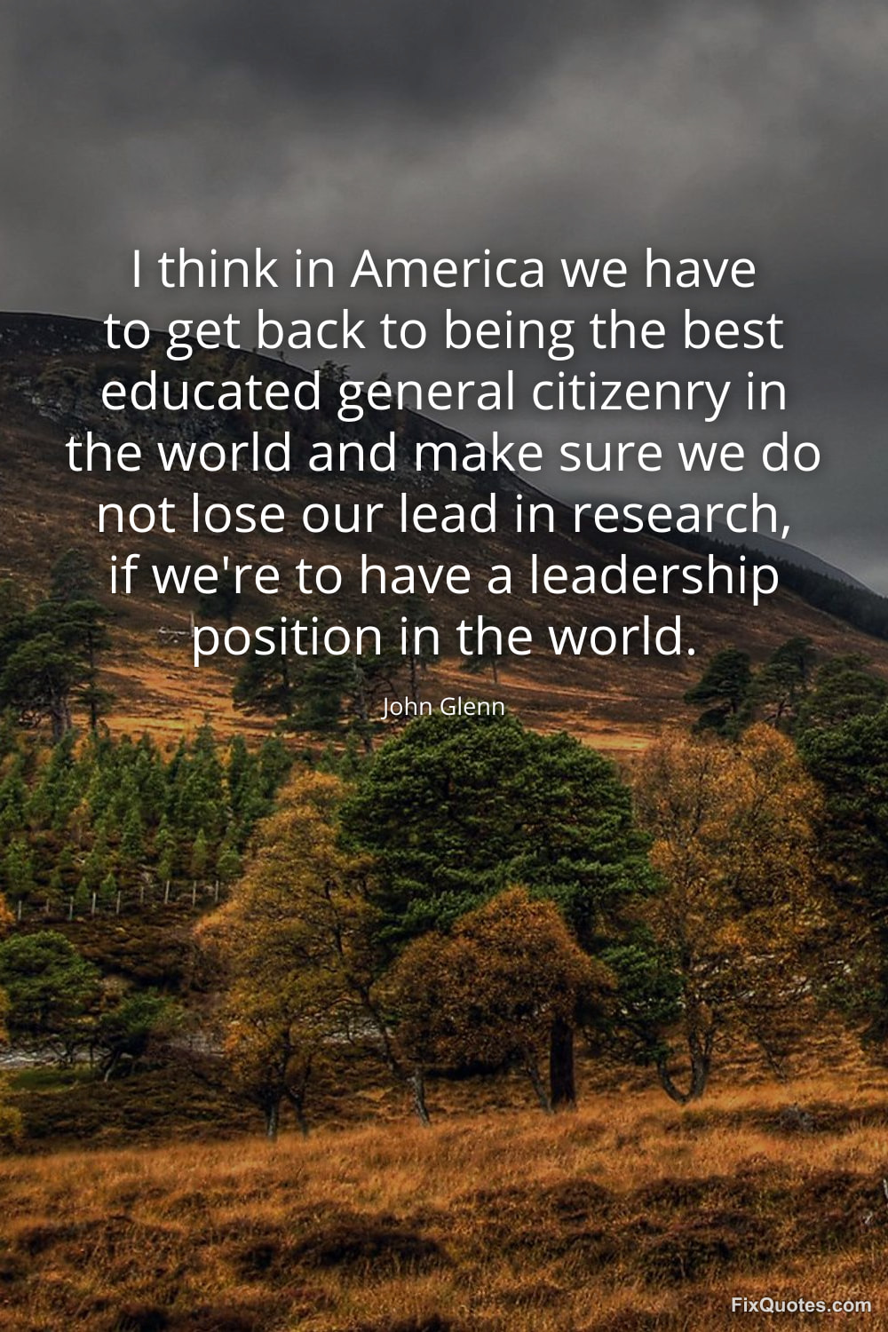 Glenn, John. (2026, January 15). I think in America we have to get back to being the best educated general citizenry in the world and make sure we do not lose our lead in research, if we're to have a leadership position in the world. FixQuotes. https://fixquotes.com/quotes/i-think-in-america-we-have-to-get-back-to-being-173471/