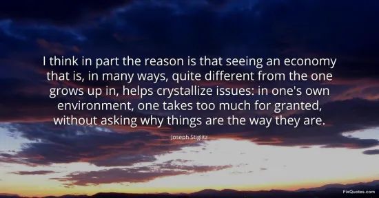 Stiglitz is doing something sneakily radical here: he’s recasting “going abroad” not as personal enrichment but as an epistemic weapon against complacency. The line hinges on a simple psychological claim with big political implications: familiarity isn’t just comfort, it’s anesthetic. When you grow up inside a particular economic order, you stop seeing it as a set of choices and start treating it as nature. Prices, wages, inequality, even the shape of “normal” opportunity become background noise.
