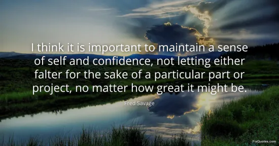 Savage, Fred. (2026, January 16). I think it is important to maintain a sense of self and confidence, not letting either falter for the sake of a particular part or project, no matter how great it might be. FixQuotes. https://fixquotes.com/quotes/i-think-it-is-important-to-maintain-a-sense-of-94308/