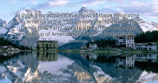 "I think it no accident that most of those emigrating to America in the 19th century identified with the Democratic Party. We are a heterogeneous party made up of Americans of diverse backgrounds." FixQuotes, 17 Jan. 2026, https://fixquotes.com/quotes/i-think-it-no-accident-that-most-of-those-43506/. Accessed 12 Feb. 2026.