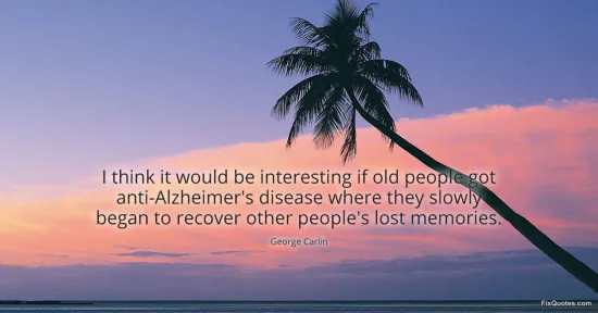 Carlin, George. (n.d.). I think it would be interesting if old people got anti-Alzheimer's disease where they slowly began to recover other people's lost memories. FixQuotes. https://fixquotes.com/quotes/i-think-it-would-be-interesting-if-old-people-got-31341/