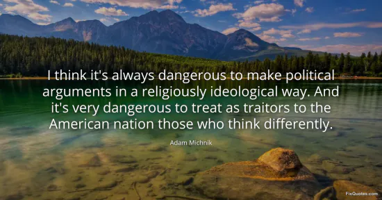 Michnik, Adam. (2026, January 17). I think it's always dangerous to make political arguments in a religiously ideological way. And it's very dangerous to treat as traitors to the American nation those who think differently. FixQuotes. https://fixquotes.com/quotes/i-think-its-always-dangerous-to-make-political-43701/