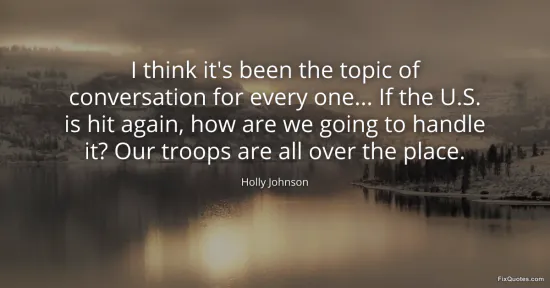 Johnson, Holly. (2026, January 15). I think it's been the topic of conversation for every one... If the U.S. is hit again, how are we going to handle it? Our troops are all over the place. FixQuotes. https://fixquotes.com/quotes/i-think-its-been-the-topic-of-conversation-for-146439/