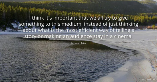 Trier, Lars von. (2026, January 16). I think it's important that we all try to give something to this medium, instead of just thinking about what is the most efficient way of telling a story or making an audience stay in a cinema. FixQuotes. https://fixquotes.com/quotes/i-think-its-important-that-we-all-try-to-give-120418/