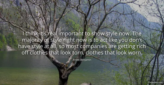Benjamin, Andre. "I think it's real important to show style now. The majority of style right now is to act like you don't have style at all, so most companies are getting rich off clothes that look torn, clothes that look worn." FixQuotes. January 16, 2026. https://fixquotes.com/quotes/i-think-its-real-important-to-show-style-now-the-109029/.