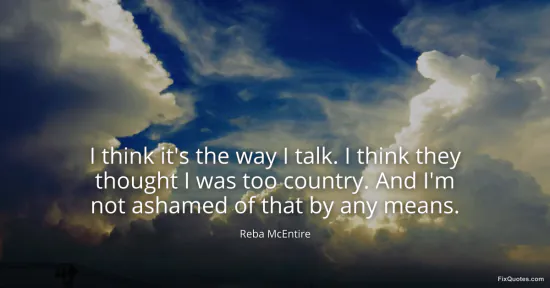 McEntire, Reba. (2026, January 15). I think it's the way I talk. I think they thought I was too country. And I'm not ashamed of that by any means. FixQuotes. https://fixquotes.com/quotes/i-think-its-the-way-i-talk-i-think-they-thought-i-96855/