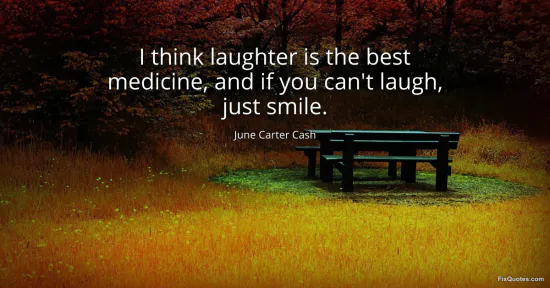 Cash, June Carter. (2026, January 15). I think laughter is the best medicine, and if you can't laugh, just smile. FixQuotes. https://fixquotes.com/quotes/i-think-laughter-is-the-best-medicine-and-if-you-172291/