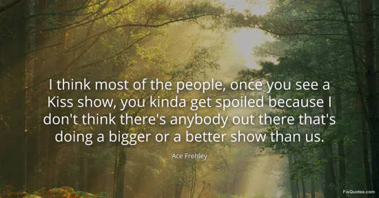 Frehley, Ace. "I think most of the people, once you see a Kiss show, you kinda get spoiled because I don't think there's anybody out there that's doing a bigger or a better show than us." FixQuotes. January 15, 2026. https://fixquotes.com/quotes/i-think-most-of-the-people-once-you-see-a-kiss-144668/.