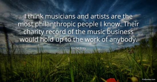 Frey, Glenn. (2026, January 17). I think musicians and artists are the most philanthropic people I know. Their charity record of the music business would hold up to the work of anybody. FixQuotes. https://fixquotes.com/quotes/i-think-musicians-and-artists-are-the-most-43594/