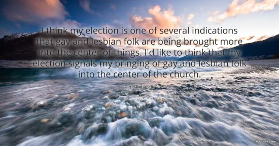 Robinson, Gene. (2026, January 17). I think my election is one of several indications that gay and lesbian folk are being brought more into the center of things. I'd like to think that my election signals my bringing of gay and lesbian folk into the center of the church. FixQuotes. https://fixquotes.com/quotes/i-think-my-election-is-one-of-several-indications-60261/
