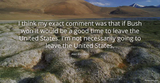 Baldwin, Alec. "I think my exact comment was that if Bush won it would be a good time to leave the United States. I'm not necessarily going to leave the United States." FixQuotes. January 17, 2026. https://fixquotes.com/quotes/i-think-my-exact-comment-was-that-if-bush-won-it-44944/.