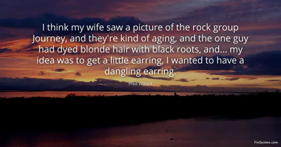 Willard, Fred. "I think my wife saw a picture of the rock group Journey, and they're kind of aging, and the one guy had dyed blonde hair with black roots, and... my idea was to get a little earring, I wanted to have a dangling earring." FixQuotes. January 16, 2026. https://fixquotes.com/quotes/i-think-my-wife-saw-a-picture-of-the-rock-group-90820/.