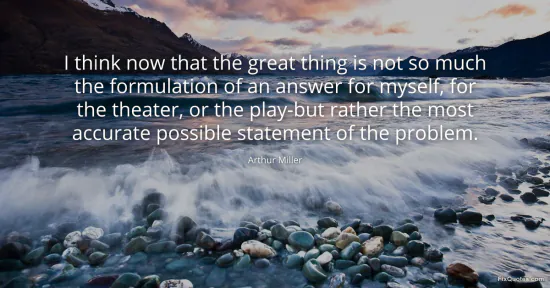 Miller, Arthur. (2026, January 18). I think now that the great thing is not so much the formulation of an answer for myself, for the theater, or the play-but rather the most accurate possible statement of the problem. FixQuotes. https://fixquotes.com/quotes/i-think-now-that-the-great-thing-is-not-so-much-6823/