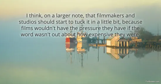 "I think, on a larger note, that filmmakers and studios should start to tuck it in a little bit, because films wouldn't have the pressure they have if the word wasn't out about how expensive they were." FixQuotes, 15 Jan. 2026, https://fixquotes.com/quotes/i-think-on-a-larger-note-that-filmmakers-and-151500/. Accessed 21 Feb. 2026.