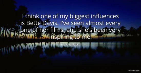 Moss, Elizabeth. "I think one of my biggest influences is Bette Davis. I've seen almost every one of her films, and she's been very inspiring to me." FixQuotes. January 17, 2026. https://fixquotes.com/quotes/i-think-one-of-my-biggest-influences-is-bette-50825/.