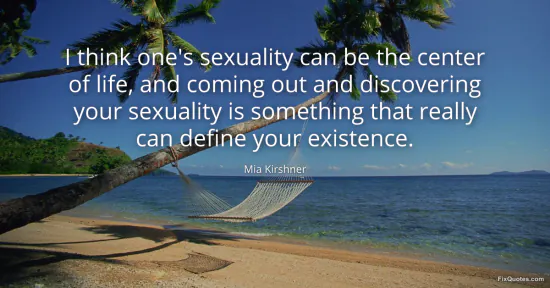 Kirshner, Mia. (2026, January 17). I think one's sexuality can be the center of life, and coming out and discovering your sexuality is something that really can define your existence. FixQuotes. https://fixquotes.com/quotes/i-think-ones-sexuality-can-be-the-center-of-life-67722/