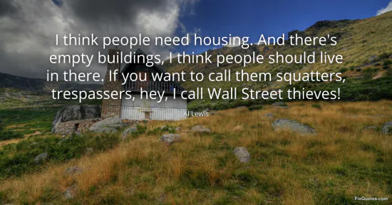 Lewis, Al. (2026, January 17). I think people need housing. And there's empty buildings, I think people should live in there. If you want to call them squatters, trespassers, hey, I call Wall Street thieves! FixQuotes. https://fixquotes.com/quotes/i-think-people-need-housing-and-theres-empty-42382/