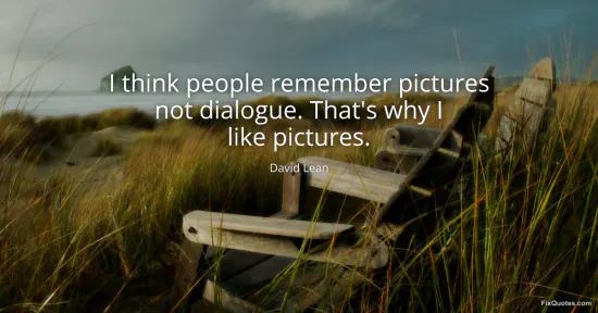 Lean, David. (n.d.). I think people remember pictures not dialogue. That's why I like pictures. FixQuotes. https://fixquotes.com/quotes/i-think-people-remember-pictures-not-dialogue-155174/