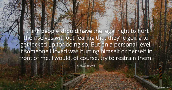 Brown, Chester. (2026, January 17). I think people should have the legal right to hurt themselves without fearing that they're going to get locked up for doing so. But on a personal level, if someone I loved was hurting himself or herself in front of me, I would, of course, try to restrain them. FixQuotes. https://fixquotes.com/quotes/i-think-people-should-have-the-legal-right-to-42490/