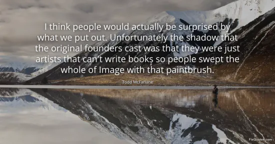 McFarlane, Todd. "I think people would actually be surprised by what we put out. Unfortunately the shadow that the original founders cast was that they were just artists that can't write books so people swept the whole of Image with that paintbrush." FixQuotes. January 16, 2026. https://fixquotes.com/quotes/i-think-people-would-actually-be-surprised-by-82581/.