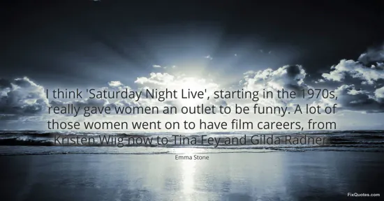 Stone, Emma. (2026, January 16). I think 'Saturday Night Live', starting in the 1970s, really gave women an outlet to be funny. A lot of those women went on to have film careers, from Kristen Wiig now to Tina Fey and Gilda Radner. FixQuotes. https://fixquotes.com/quotes/i-think-saturday-night-live-starting-in-the-1970s-87578/