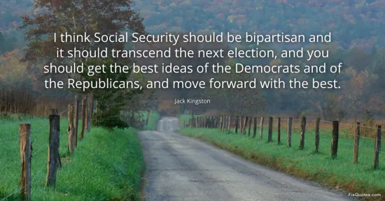 Kingston, Jack. (2026, January 16). I think Social Security should be bipartisan and it should transcend the next election, and you should get the best ideas of the Democrats and of the Republicans, and move forward with the best. FixQuotes. https://fixquotes.com/quotes/i-think-social-security-should-be-bipartisan-and-121742/