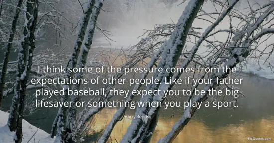 Bonds, Barry. (2026, January 15). I think some of the pressure comes from the expectations of other people. Like if your father played baseball, they expect you to be the big lifesaver or something when you play a sport. FixQuotes. https://fixquotes.com/quotes/i-think-some-of-the-pressure-comes-from-the-37532/