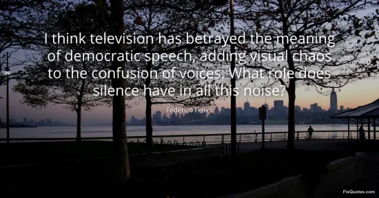 Fellini, Federico. (2026, January 15). I think television has betrayed the meaning of democratic speech, adding visual chaos to the confusion of voices. What role does silence have in all this noise? FixQuotes. https://fixquotes.com/quotes/i-think-television-has-betrayed-the-meaning-of-145726/