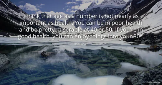 Barker, Bob. (2026, January 17). I think that age as a number is not nearly as important as health. You can be in poor health and be pretty miserable at 40 or 50. If you're in good health, you can enjoy things into your 80s. FixQuotes. https://fixquotes.com/quotes/i-think-that-age-as-a-number-is-not-nearly-as-48853/
