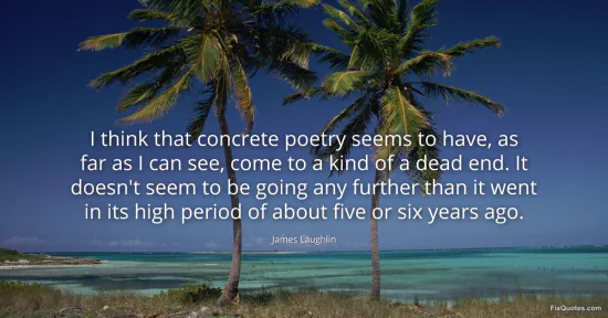 Laughlin, James. (2026, January 17). I think that concrete poetry seems to have, as far as I can see, come to a kind of a dead end. It doesn't seem to be going any further than it went in its high period of about five or six years ago. FixQuotes. https://fixquotes.com/quotes/i-think-that-concrete-poetry-seems-to-have-as-far-51420/