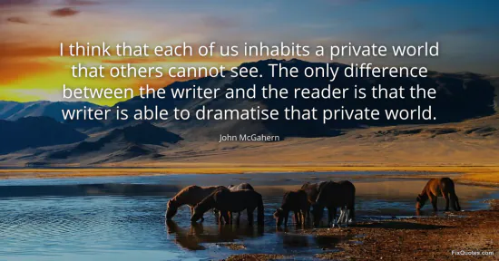 McGahern, John. "I think that each of us inhabits a private world that others cannot see. The only difference between the writer and the reader is that the writer is able to dramatise that private world." FixQuotes. January 16, 2026. https://fixquotes.com/quotes/i-think-that-each-of-us-inhabits-a-private-world-98303/.
