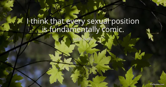 Butler, Judith. "I think that every sexual position is fundamentally comic." FixQuotes. January 16, 2026. https://fixquotes.com/quotes/i-think-that-every-sexual-position-is-92645/.