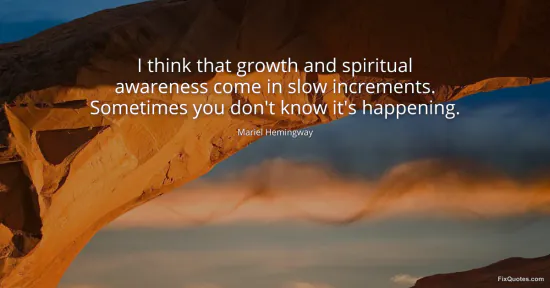 Hemingway, Mariel. (2026, January 16). I think that growth and spiritual awareness come in slow increments. Sometimes you don't know it's happening. FixQuotes. https://fixquotes.com/quotes/i-think-that-growth-and-spiritual-awareness-come-115087/