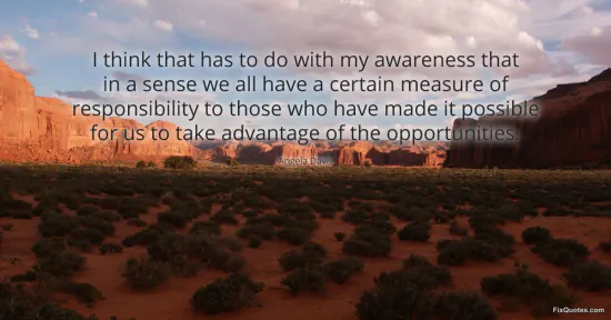 Davis, Angela. (2026, January 17). I think that has to do with my awareness that in a sense we all have a certain measure of responsibility to those who have made it possible for us to take advantage of the opportunities. FixQuotes. https://fixquotes.com/quotes/i-think-that-has-to-do-with-my-awareness-that-in-37488/