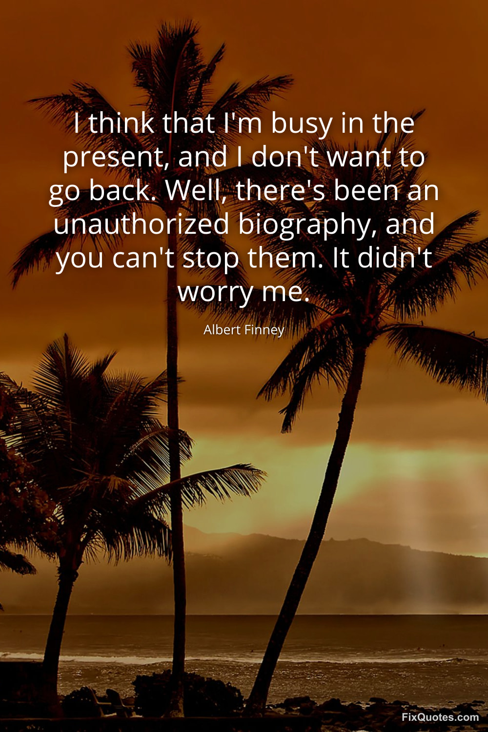 Finney, Albert. (2026, January 17). I think that I'm busy in the present, and I don't want to go back. Well, there's been an unauthorized biography, and you can't stop them. It didn't worry me. FixQuotes. https://fixquotes.com/quotes/i-think-that-im-busy-in-the-present-and-i-dont-36683/