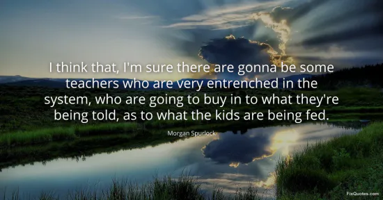 Spurlock is doing what he does best: turning institutional banality into a moral plotline with villains, victims, and a rigged machine. The sentence stumbles forward in real time ("I think that, I'm sure..."), and that hesitation matters. It performs honesty while still landing a clean accusation: some teachers are "entrenched", they "buy in", and kids are being "fed" whatever the system wants. The rhetorical move is to soften the blow with conversational uncertainty, then sharpen it with loaded verbs.