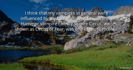 Hamilton, Laurell K. "I think that my vampires in general were influenced by my being allowed to watch the Hammer vampire films. Vampire Circus, also shown as Circus of Fear, was one of those movies." FixQuotes. January 17, 2026. https://fixquotes.com/quotes/i-think-that-my-vampires-in-general-were-81276/.