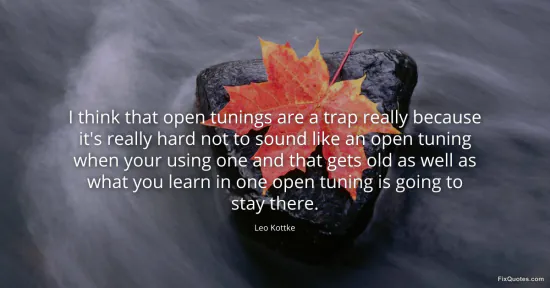 Kottke, Leo. "I think that open tunings are a trap really because it's really hard not to sound like an open tuning when your using one and that gets old as well as what you learn in one open tuning is going to stay there." FixQuotes. January 15, 2026. https://fixquotes.com/quotes/i-think-that-open-tunings-are-a-trap-really-142719/.