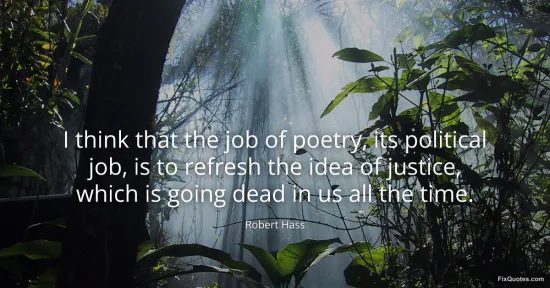 Hass, Robert. (2026, January 17). I think that the job of poetry, its political job, is to refresh the idea of justice, which is going dead in us all the time. FixQuotes. https://fixquotes.com/quotes/i-think-that-the-job-of-poetry-its-political-job-77023/