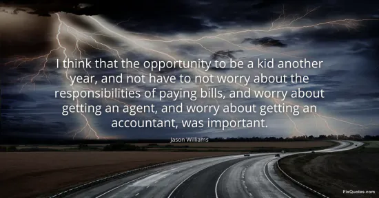 Williams, Jason. (2026, February 17). I think that the opportunity to be a kid another year, and not have to not worry about the responsibilities of paying bills, and worry about getting an agent, and worry about getting an accountant, was important. FixQuotes. https://fixquotes.com/quotes/i-think-that-the-opportunity-to-be-a-kid-another-126956/