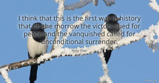 Eban, Abba. "I think that this is the first war in history that on the morrow the victors sued for peace and the vanquished called for unconditional surrender." FixQuotes. January 18, 2026. https://fixquotes.com/quotes/i-think-that-this-is-the-first-war-in-history-5935/.