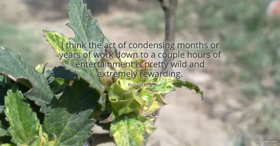 King, Richard. (2026, January 17). I think the act of condensing months or years of work down to a couple hours of entertainment is pretty wild and extremely rewarding. FixQuotes. https://fixquotes.com/quotes/i-think-the-act-of-condensing-months-or-years-of-64430/