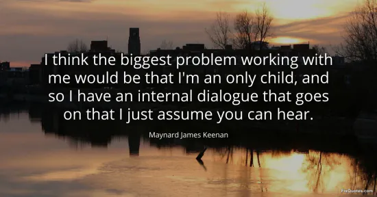 Keenan, Maynard James. "I think the biggest problem working with me would be that I'm an only child, and so I have an internal dialogue that goes on that I just assume you can hear." FixQuotes. January 17, 2026. https://fixquotes.com/quotes/i-think-the-biggest-problem-working-with-me-would-82020/.