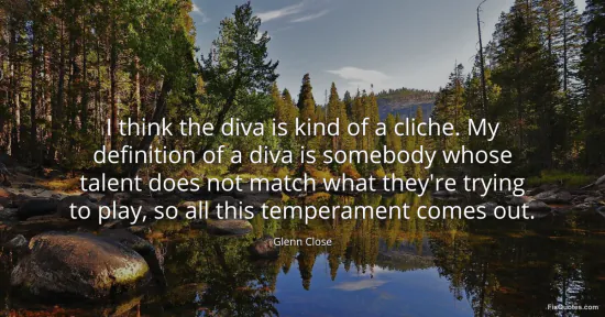 Close, Glenn. (2026, January 16). I think the diva is kind of a cliche. My definition of a diva is somebody whose talent does not match what they're trying to play, so all this temperament comes out. FixQuotes. https://fixquotes.com/quotes/i-think-the-diva-is-kind-of-a-cliche-my-132839/