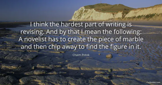 Potok, Chaim. (2026, January 17). I think the hardest part of writing is revising. And by that I mean the following: A novelist has to create the piece of marble and then chip away to find the figure in it. FixQuotes. https://fixquotes.com/quotes/i-think-the-hardest-part-of-writing-is-revising-44553/