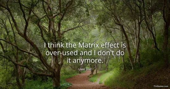 Boll, Uwe. (2026, January 16). I think the Matrix effect is over-used and I don't do it anymore. FixQuotes. https://fixquotes.com/quotes/i-think-the-matrix-effect-is-over-used-and-i-dont-86728/