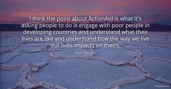 Thompson, Emma. (2026, January 17). I think the point about ActionAid is what it's asking people to do is engage with poor people in developing countries and understand what their lives are like and understand how the way we live our lives impacts on theirs. FixQuotes. https://fixquotes.com/quotes/i-think-the-point-about-actionaid-is-what-its-52632/