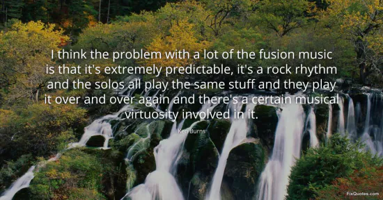 Burns, Ken. "I think the problem with a lot of the fusion music is that it's extremely predictable, it's a rock rhythm and the solos all play the same stuff and they play it over and over again and there's a certain musical virtuosity involved in it." FixQuotes. January 15, 2026. https://fixquotes.com/quotes/i-think-the-problem-with-a-lot-of-the-fusion-153696/.
